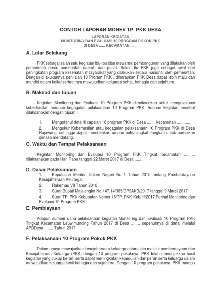 Contoh Laporan Monev Tp Pkk Pdf
